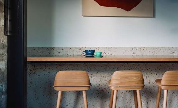 The combined restaurant and café feature time-tested elements found in classic cafés and brasseries.