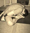 Use your breathing to help soften your body. Get the breath into the nooks and crannies of those physical and mental edges. Breathe in to your upper back, and as you exhale draw your navel in toward your spine. As you relax into the pose, the breath will help quiet your mind. To take the pose a little deeper, you can use your elbows to help roll your thighs outward.