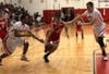 Seemingly the entire Northeast bleacher section, following the Vikings team, chased down Sanchez at midcourt to bury him with a gangtackle in celebration as students and players alike celebrated deliriously.