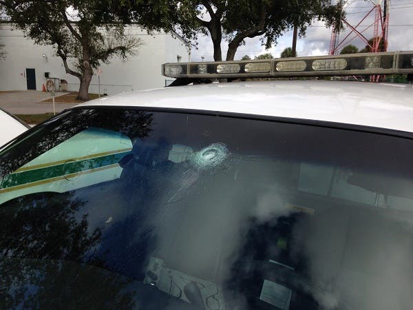 According to the agency, an officer getting ready to go on duty around 10:30 p.m. Thursday went to his cruiser and discovered a bullet hole in its windshield. The vehicle was parked at police headquarters, 1300 1st Ave. N.