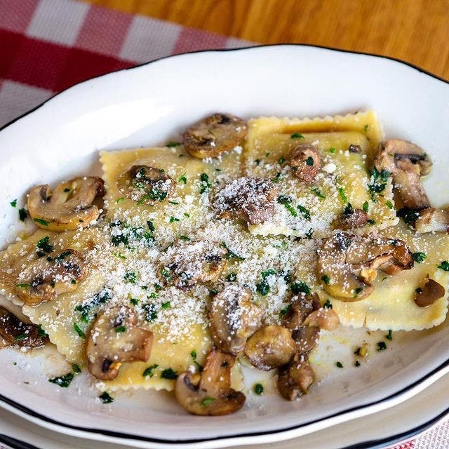 Pasta special of the day scrumptious ravioli with mushrooms.