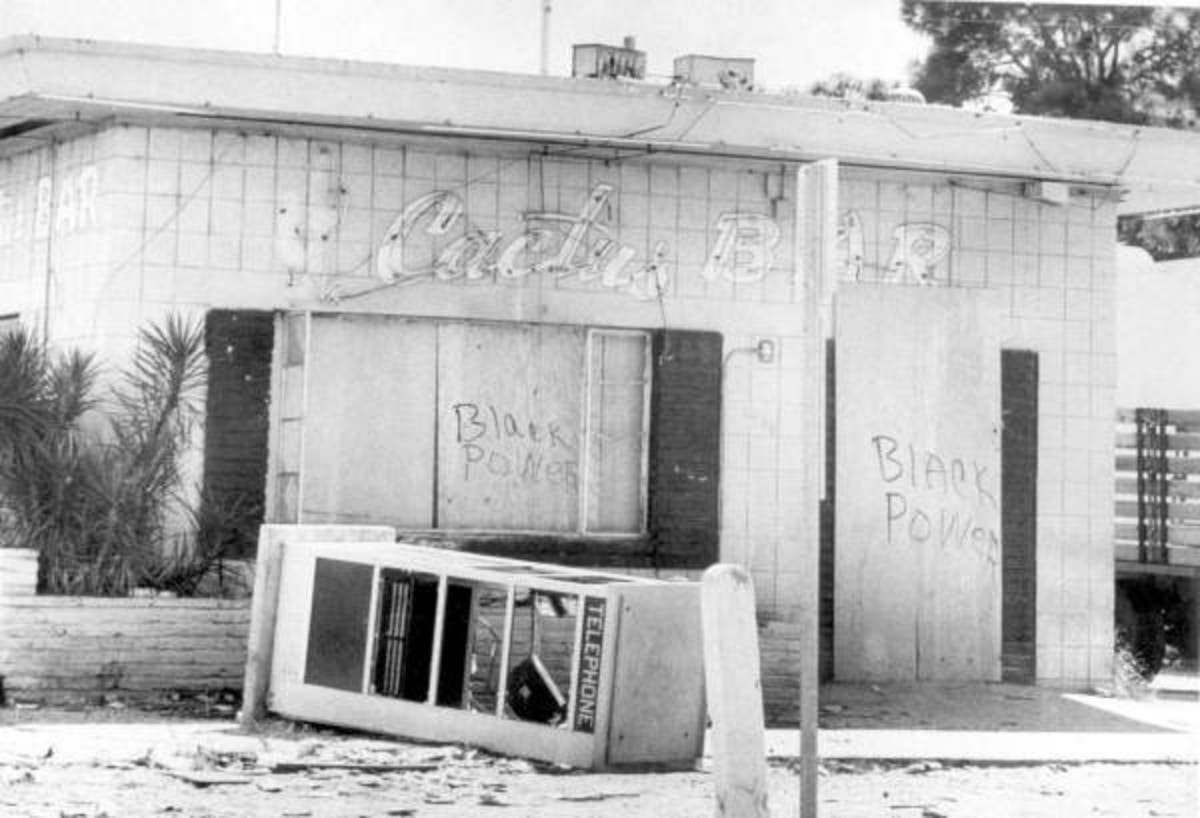 The reason this correction is important is because the real Cactus Bar was (and still is) located in a black neighborhood and it was involved in the 1968 Race riots in St. Petersburg that followed the assassination of Dr. Martin Luther King on April 4, 1968 (see photo). Unfortunately, it is no longer a bar but the building still stands at 1844 18th Avenue South in St Petersburg.