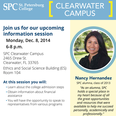 An opportunity to meet admissions representatives and staff at SPC's Clearwater Campus