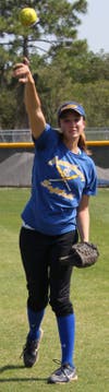 Crusaders starting pitcher Emily Winesett pitched 11 innings before being replaced by Krissy Longstreet.