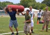 Prior to the spring intrasquad Green & White game, six members of the 4th Assault Amphibian Battalion and the Recruiting Substation of St. Pete challenged six members of the football team to a Combat Fitness Test, which consisted of strength and endurance events, like the ammo can lift and modified high crawl.