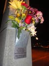After Tuesday night's somber memorial, in the breezeway of the police building at 1300 First Ave., more than a dozen officers quietly gathered at the intersection. They stood in silence near a plaque that reads, "Rest in peace our fallen brother. You have fallen, but God has lifted you up."