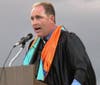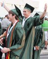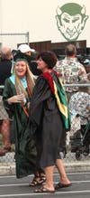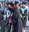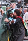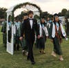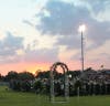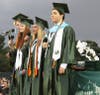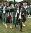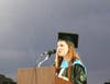 It started out as a picturesque evening. The warm sun was setting and lighting up the partly cloudy sky with pink and coral hues. But just before diplomas were to be handed out to the graduates, the skies opened and a downpour ensued, drenching all in attendance.