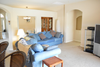 Walk in the great foyer, enjoy the custom tile work, and look straight out through the rear triple sliders out to your majestic pool, spa & waterfront view! The rooms are situated in a split plan design to allow for ample privacy for the owner's suite. There is a den/office/nursery (4th bedroom) off the owner's suite, which is a great feature. The kitchen features upgraded cabinets with zodiac countertops, and there is a great breakfast bar for entertaining. The home is wired with security & surround sound systems throughout. The exterior highlights of this property include a freshly repainted exterior (2012), a gorgeous heated pool, a remote controlled heated Jacuzzi, covered lanai with...