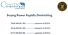 For example, let’s say a couple is looking to purchase a home with a monthly payment of $1515. They were able to look at houses up to $350,000 when the interest rate was at 3.5%. As interest rates get higher, that same couple’s budget will not fluctuate & will have to keep their monthly payment at $1515. Therefore, the price range they will be looking in will get lower. At current rate of 4.5%, they are now going to be looking for a house in the $310,000 price range. That’s a drastic difference if you consider in May 2013 they would afford a house $40,000 more than they would be able to afford right now. (See Buying Power Rapidly Diminishing image attached)