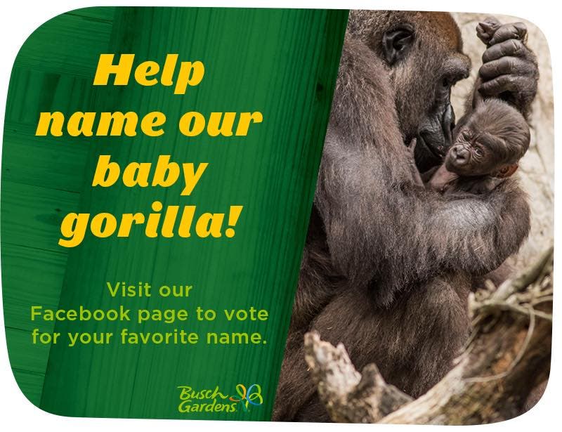 To vote for the baby’s name, just visit Busch Gardens’ Facebook page.