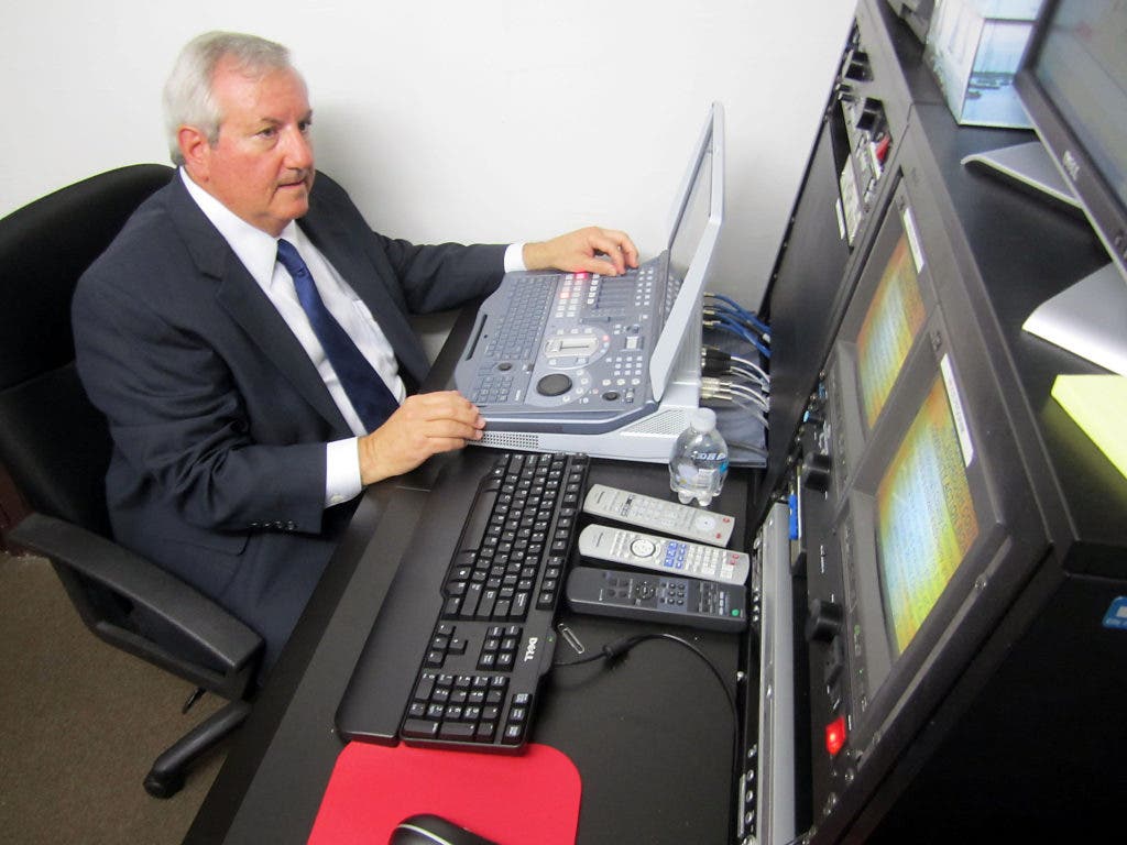 From a laptop-sized panel with lots of tiny buttons, dials and sliding knobs, the city’s public information officer controls the four cameras that are used to record City Council and Municipal Code Board meetings. The meetings are broadcast live on Verizon channel 39 and Bright House channel 950. Then, they are rebroadcast at different times during the week.