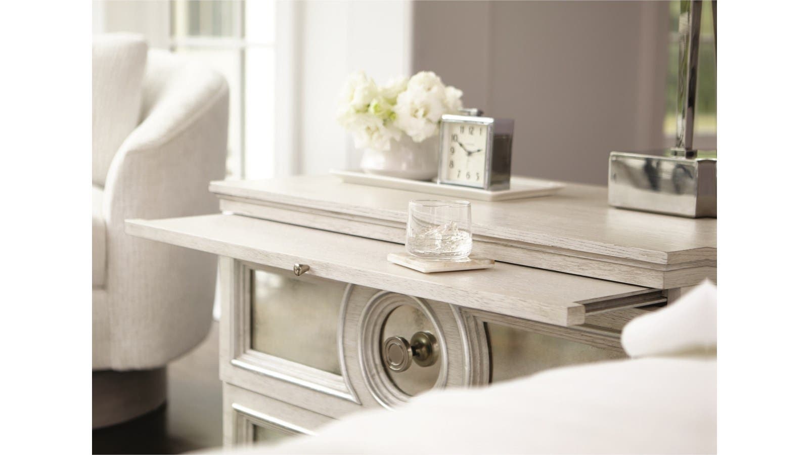 The Allure Bachelors Chest with Antiqued Mirror Panels from Bernhardt lives up to its name, with alluring mirrored accents and a palette of white and silver tones that give any space more than a hint of glamour. It brings a sense of understated elegance and fresh, effortless style.