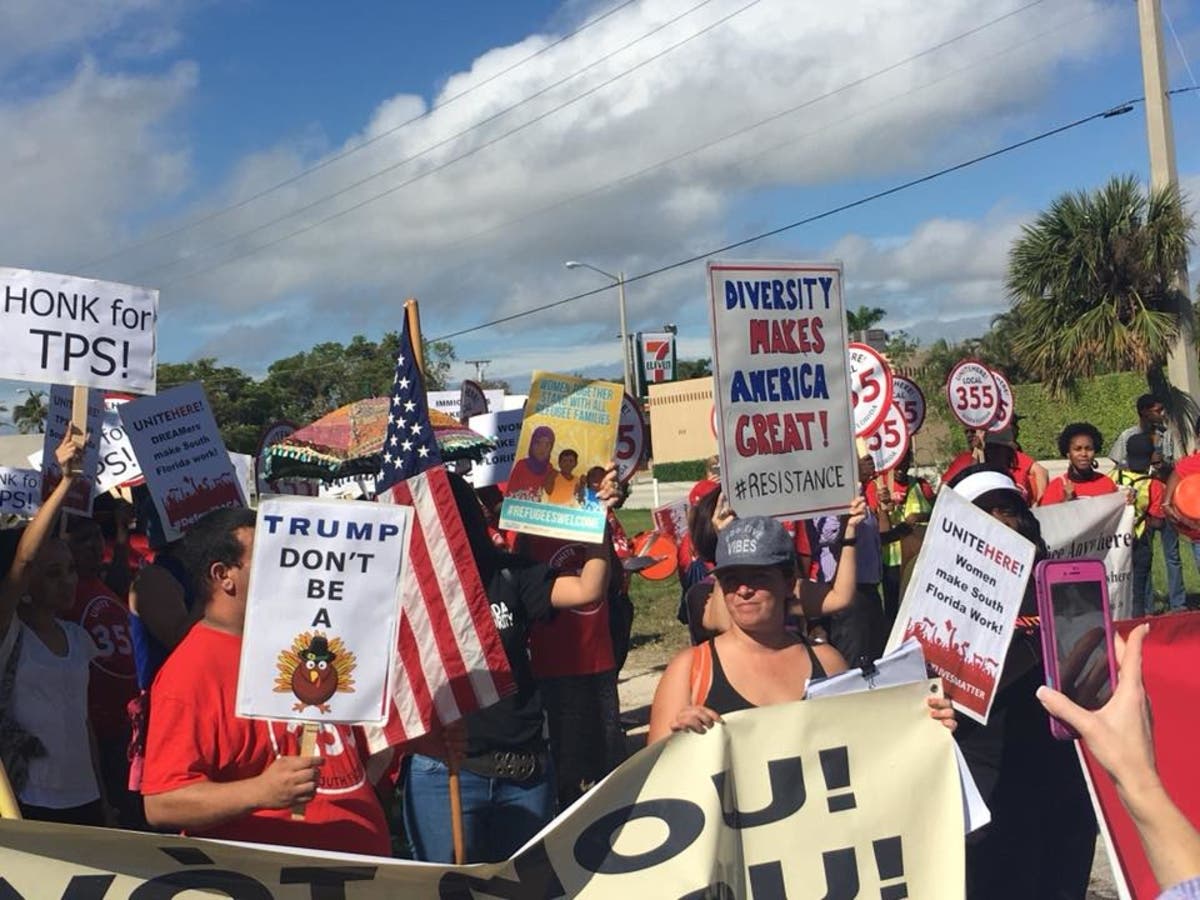 Walsh said that the peaceful protest arrived at Mar-a-Lago around noon Tuesday before making its way to nearby West Palm Beach for speeches by TPS recipients, faith leaders and union officials.