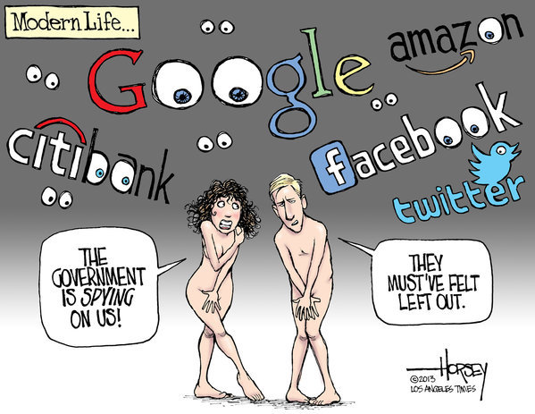 The real privacy invaders are corporations - phone and cable companies, internet providers, and banks. Where does the government get their information? Companies like AT&T, Verizon, Google, Yahoo, Amazon, Apple, Microsoft, Comcast, Cox, Bank of America, Wells Fargo, SunTrust, Chase, etc...collect massive amounts of data in the name of marketing and they sell your information to all manner of bidders. And many times you don't even know you've opted in. Google admitted this week in response to wiretapping lawsuits over scanning email to serve up targeted ads: "all users of email must necessarily expect their emails will be subject to automated processing".
