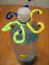 How the Bubble Bottle stimulates the senses: The baby oil does not mix with the water so when you shake or swirl the bottle the two liquids create a glittery wave that babies and older children love to watch. The foam stickers, pipe cleaners and bells provide tactile and auditory stimulation when you shake the bottle.