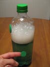 Shake to distribute the food coloring and activate the bubbles.