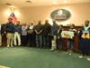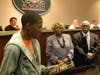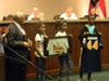 Claude Johnson, 75, was given a proclamation by Mayor Tommy Allegood and was presented a plaque and two baseball jerseys by members of the Acworth Achievers after school mentoring program.
