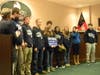 Kindergarteners through sixth graders that attend McCall Primary, Acworth Intermediate, Frey Elementary and Brookwood Christian schools, along with their families, filed into a packed City Hall to receive recognition for their artwork from alderman and former principal Butch Price, Parks and Recreation Director James Albright and Acworth Tree Commission member Cyndi McLaughlan. Each child's poster was displayed on screens in the council chambers and each child received an award for their first, second or third place finish.