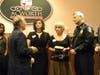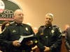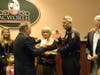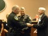 Following his speech, in which he also said he felt “laden with vision,” on the future of the organization, new Chief Dennard was given the chief's badge by Wilkie and received his new collar eagles from his father, son and daughter.