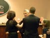 Multiple ovations were given by the standing-room only crowd at to both Dennard and . Wilkie is to teach at Bob Jones University, a Christian university in Greenville, SC.