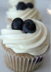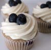 In a stand mixer or with a hand held mixer, on medium speed, beat the cream cheese and butter until smooth. Slowly add 3 cups of the sugar, when syrup. If the mixture loses its pliable thickness, gradually add the remaining sugar until the preferred texture is achieved. Frost the cupcakes, decoratively, according to preference. Top with blueberries.