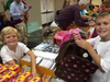 Rotary members and their children and friends gathered to stuff the backpacks with a variety of school supplies following their Friday morning breakfast meeting.