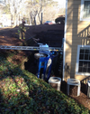 According to the Alpharetta Department of Public Safety’s Facebook page, a “low speed vehicle” ran off the road along Sweetberry Court, hopped over curb and retaining wall and came to a rest on its left side between the wall and an apartment building.