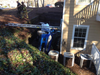 Car Runs Off Road, Lands Between Retaining Wall, Apartment Building