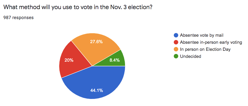 Nearly one-third of survey respondents —27.6 percent — said they plan to cast their votes in person on Election Day.