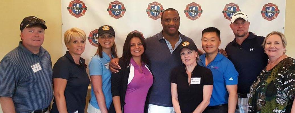 Former pro football players Mo Lewis and Tim Lester were on hand to play, mingle and take photos with golfers and first responders throughout the day.