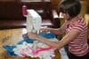 Elsner worked on a "happy skirt," that involved stitching together several bright colored fabrics of different patterns, while Uma Nagendra combined two old shirts into one for a unique "platypus" tee.