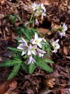 Soon we saw patches of toothwort (Dentaria laciniata), a native in the mustard family. Linda suggested tasting its leaves. I let her go first. After observing that her motor skills were still intact, I followed suit. Spicy!