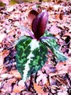 First we saw a Chattahoochee trillium, a trillium that takes approximately seven years to reach maturity. Its three large leaves sport a camouflaged pattern of beautifully mottled greens, browns and silver. A plant dressed in camo-garb in the woods? Its humor was not lost on me.