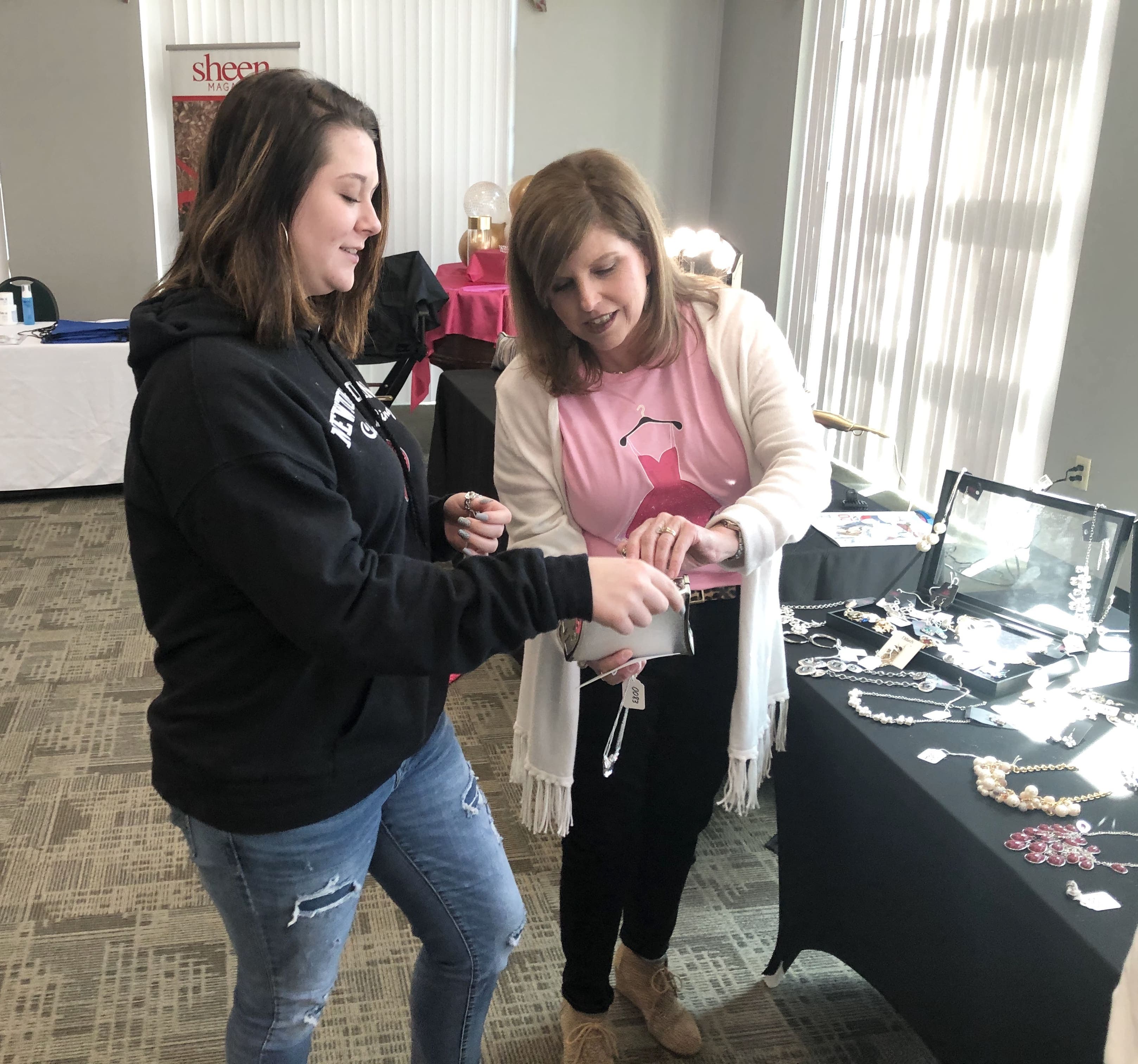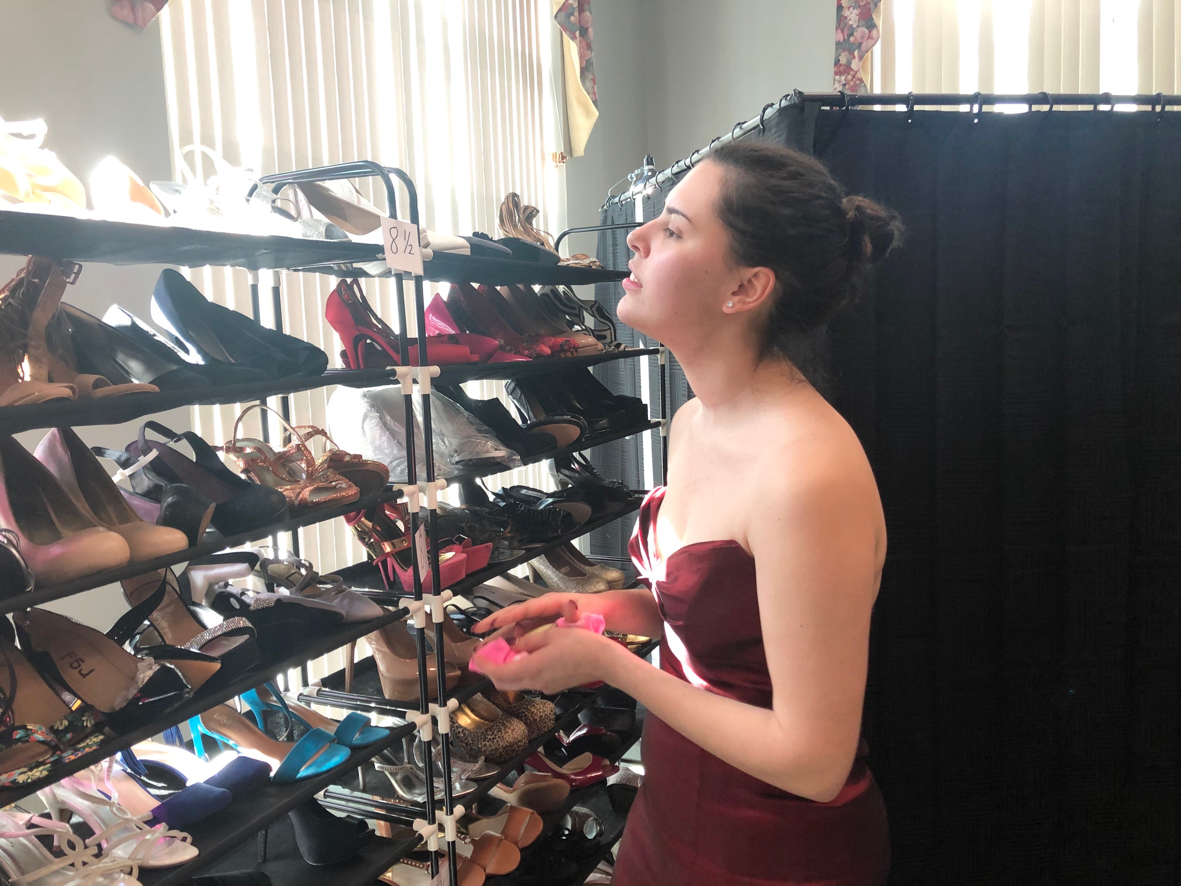 The women encouraged the girls as they guided them through the entire selection process, moving station to station. There were tables for jewelry, handbags and tiaras. A tall shoe rack stood in the corner of the room near the racks of colorful dresses. There was something for every size.