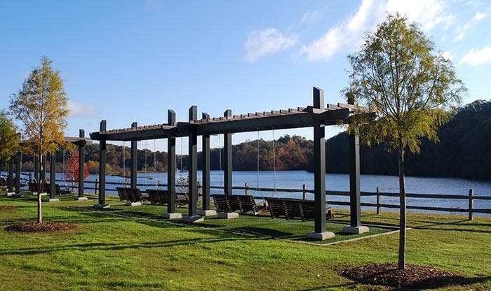 Opened in 2010 as Sandy Springs' first new park since incorporating, you get all the typical playground stuff here, plus a whole lot more. Overlooking the Chattahoochee River, it features what's called The Spiderweb – a tall rope structure for kids to play on. There are sun shades over the two modern play structures and a pavilion, fire pit, horseshoe pits, bench swings and a dock for canoeing or boating in the river.