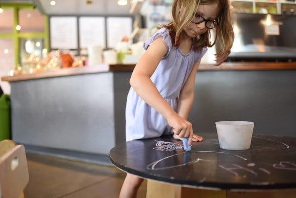 Located in Glenwood Park, Drip Coffee boasts a huge parking lot directly behind this modern building, allowing for easy access for you and your crew of kids. Once inside, quiet music fills the room, making me feel less inclined to shush my kids every five seconds for fear of interrupting the patrons who came to work on their mobile devices. Chalkboard tables and a variety of board games will keep kids of all ages entertained. Highchairs are available for toddlers, and there is plenty of space for strollers while you place your order.