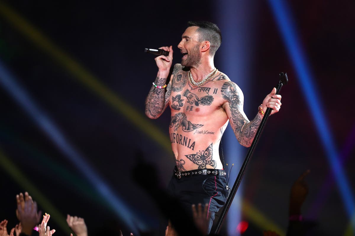 Adam Levine of Maroon 5 performs during the Pepsi Super Bowl LIII Halftime Show.