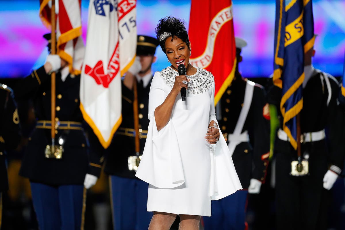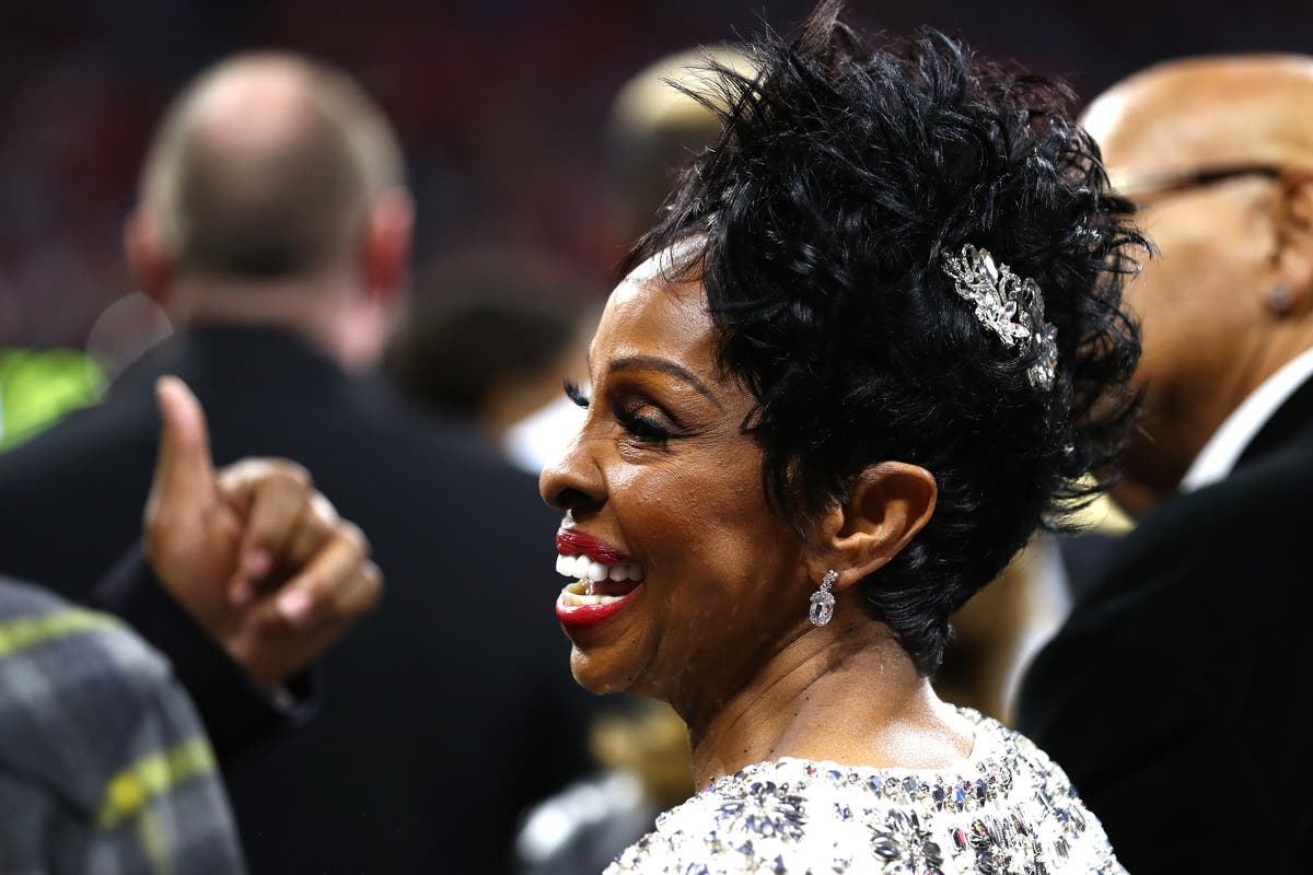 Gladys Knight sings the National Anthem prior to kickoff at Super Bowl LIII at Mercedes-Benz Stadium on February 3, 2019 in Atlanta, Georgia.