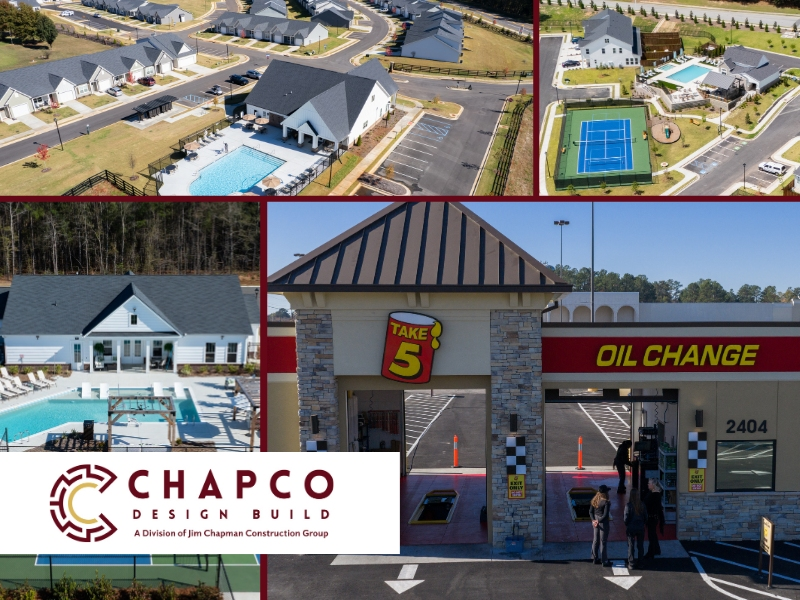 Chapco Design Build launched eight new projects in 2025, including amenity centers at Wildflower in Chattanooga, TN; Wren’s Hollow in Pooler, GA; Quinn Residences at Snapping Shoals in McDonough, GA; The Cottages at Capital Circle in Tallahassee, FL; The Cottages at Villa Rica in Villa Rica, GA; The Cottages at Dawsonville in Dawsonville, GA; and Creekside Cottages in Opelika, AL; as well as a Take 5 Oil Change in Milledgeville, GA, which was completed in just four months.