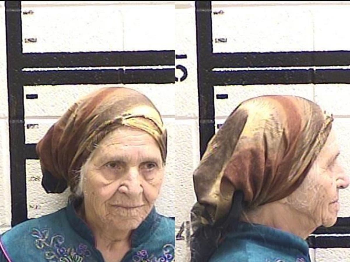 "She's old so she can't get around too well ... ," the caller says. "Looks like she’s walking around looking for something, like, vegetation to cut down or something. There’s a bag, too."