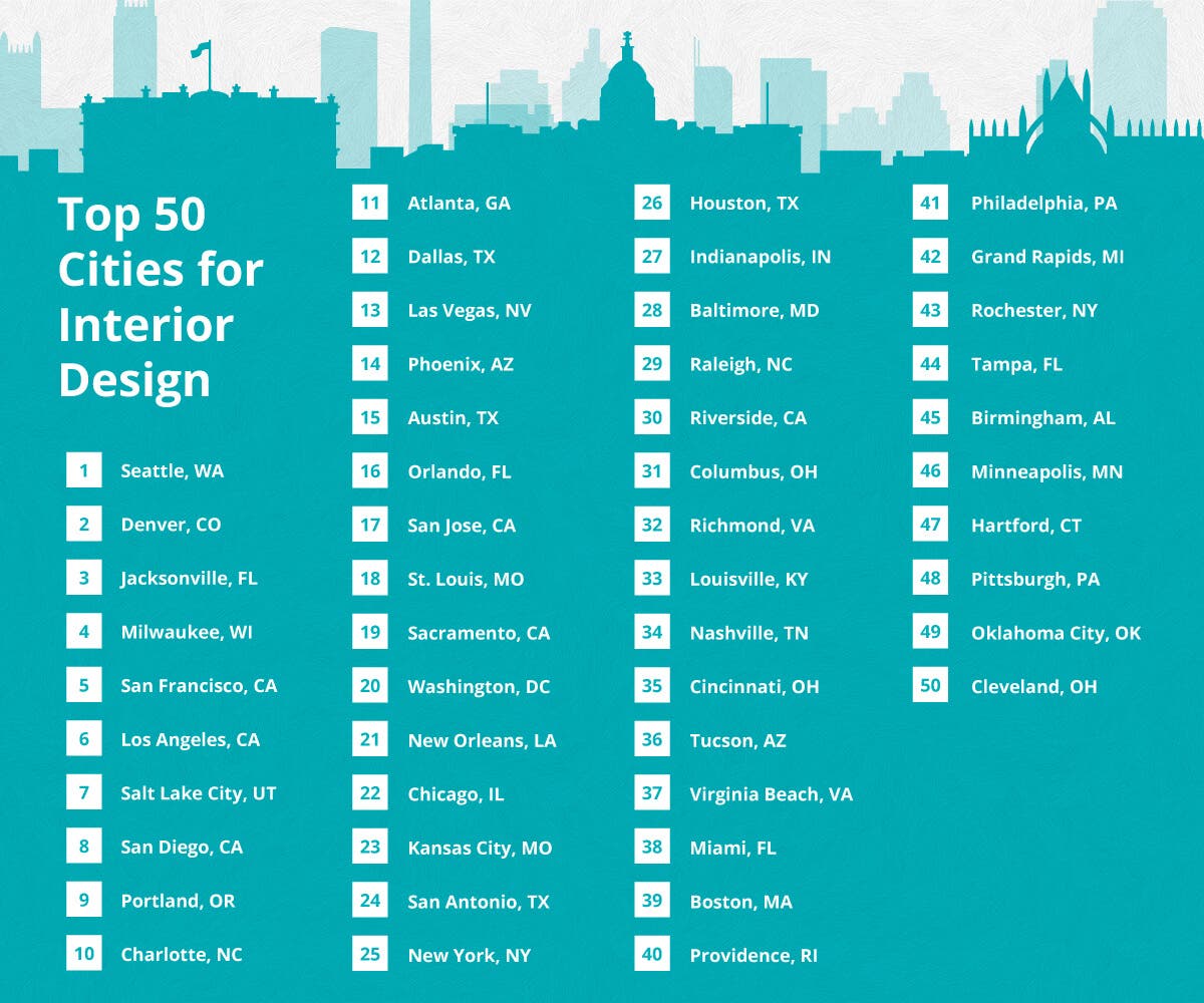 Well, the truth is, if you're an interior designer looking to explore other parts of the country, you should consider moving out West. Out of all the US regions, the West holds some of the best cities for interior design. From Seattle to Portland, San Francisco, Salt Lake City, Denver and more, your options are pretty much limitless. But if you’d rather move up North, you should look into Milwaukee, which happens to be the fourth-best city for interior design in the country.