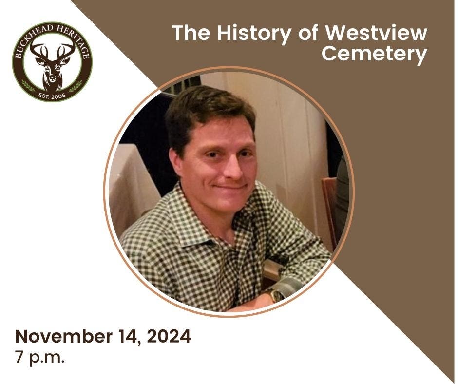 The Nov. 14 Buckhead Heritage Speaker Series will feature Jeff Clemmons talking about the history of Westview Cemetery. The free event, which is open to the public, will begin at 7 p.m. at the Cathedral of Saint Philip. Please register at http://www.BuckheadHeritage.com.