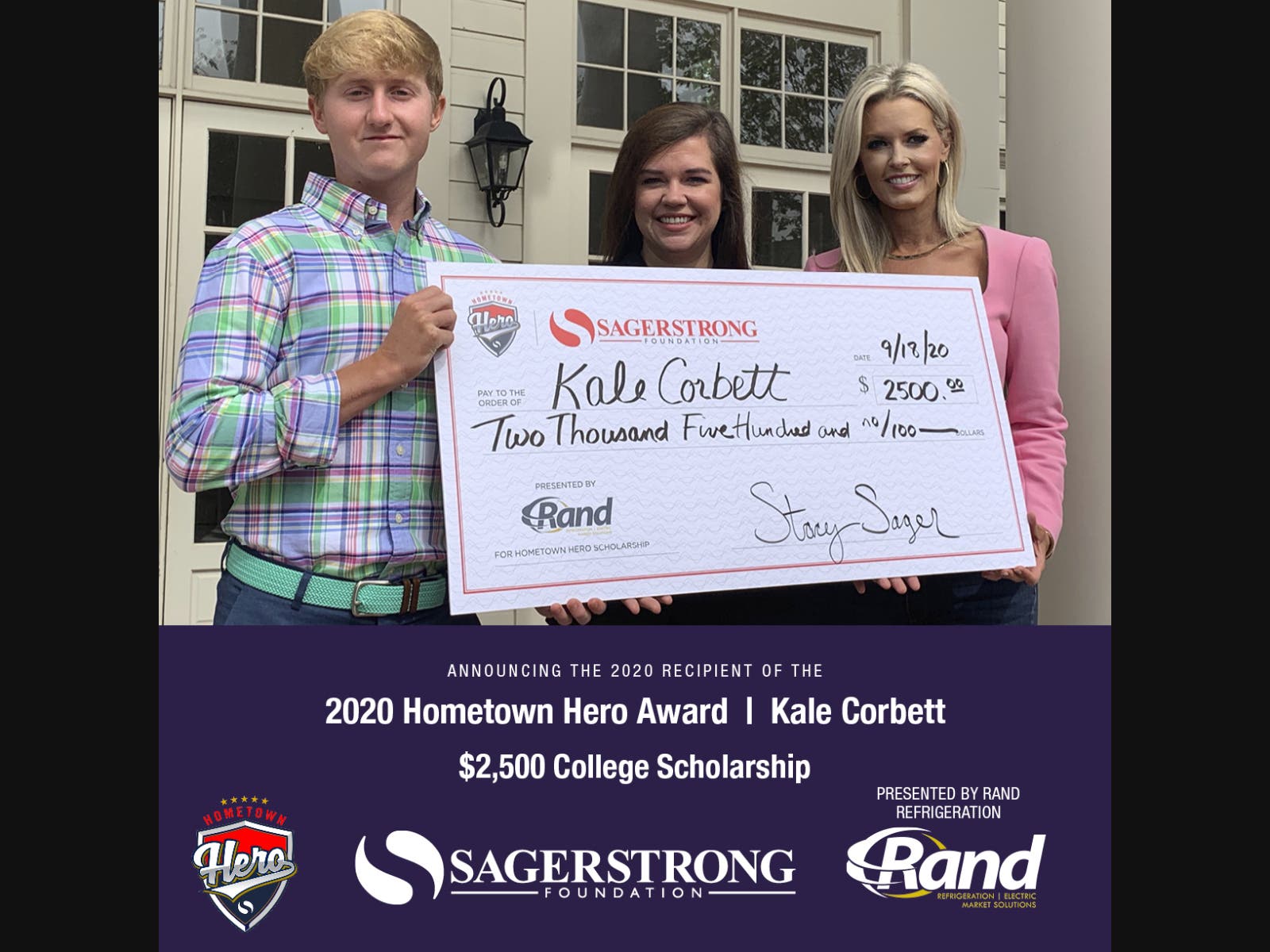 The SagerStrong Foundation Announced its Second Annual Hometown Hero Award Winner today, during National Blood Cancer Awarness Month; congratulations to Kale Corbett! In addition to being named the 2020 SagerStrong Foundation Hometown Hero, Corbett, a Senior from Tallulah Falls School, will receive a $2500 scholarship award made possible through a generous donation from Rand Refrigeration.