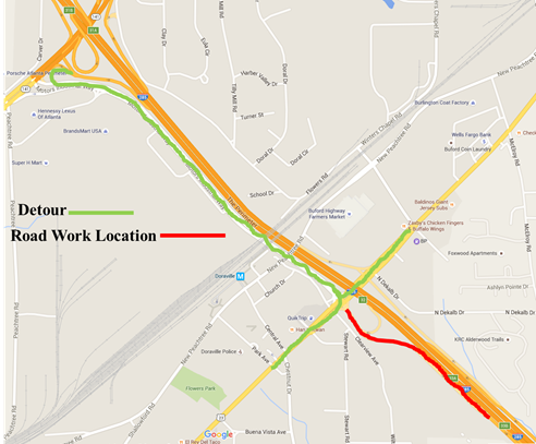 Georgia DOT contractors will close the ramp from Buford Highway to I-285 south for concrete rehabilitation beginning Wednesday night, July 13, from 9 am to 5 pm.