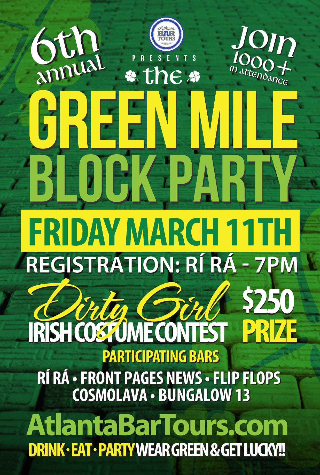 Eat, Drink & Party in Midtown's Entertainment District for the 6th Annual St. Patrick's Day Green Mile Block Party.