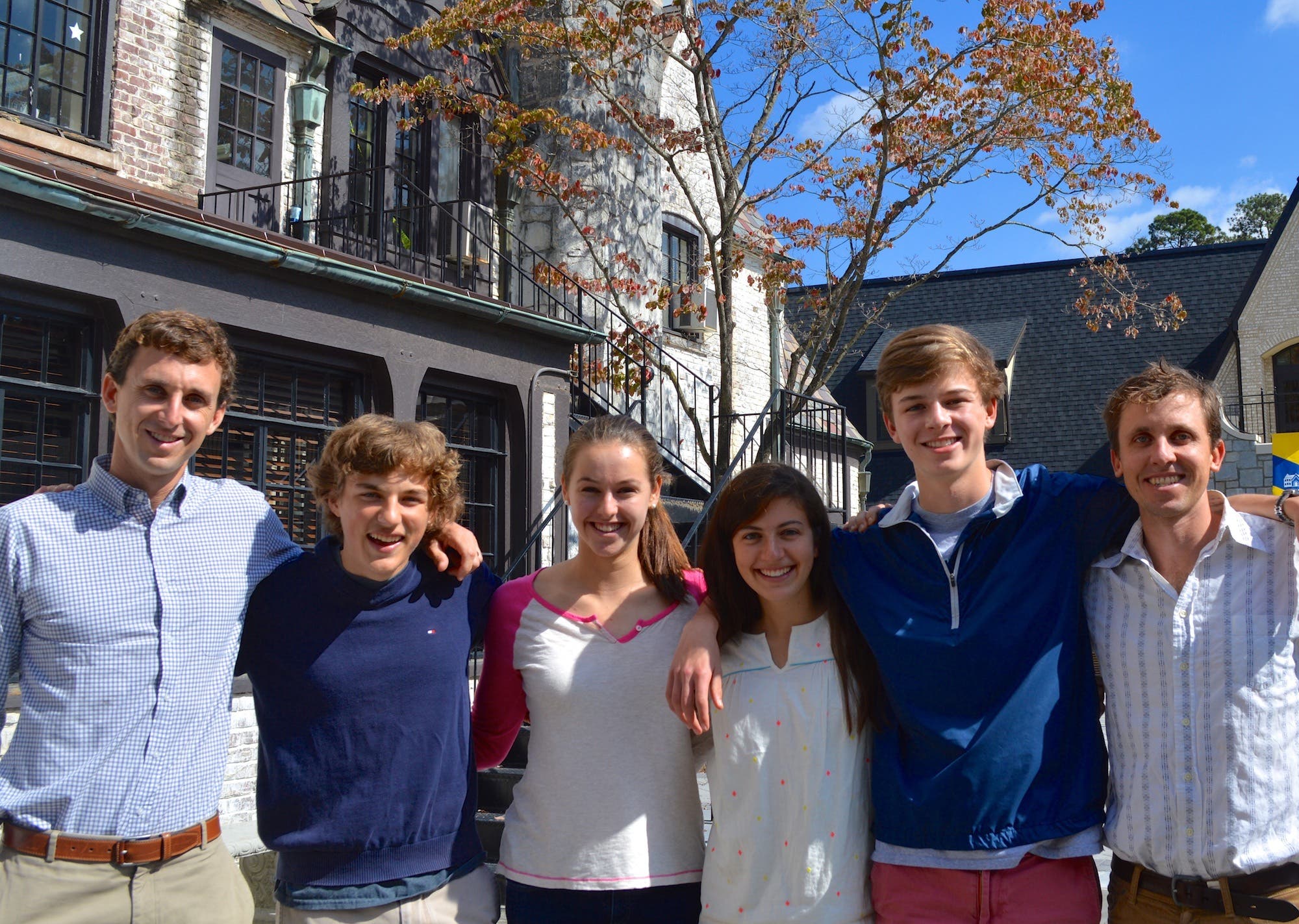 David Hanson (far left) and Michael Hanson (far right) with Pace Academy Isdell Global Leaders (left to right) Alec Rogers, Julia Ross, Sarah Lettes and Christopher Howard. Credit: Pace Academy