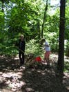 Volunteers then worked through the morning to remove leaf litter, small limbs, and invasive plants from the site. The students and Buckhead Heritage Society volunteers uncovered brickwork and other burial features that had been previously covered by debris.