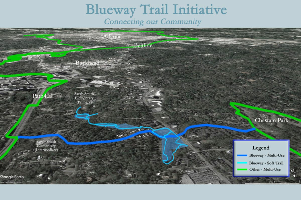 The Blueway Trail Initiative expands beyond our internal trails and includes plans to further connect the community in Phase 2. The Blueway Trail will grow west to connect with Chastain Park’s PATH and PATH 400 as well as east to connect to the Atlanta Beltline. Supporters of the Blueway Trail Initiative include the Woodruff Foundation, Park Pride and the Buckhead Coalition.