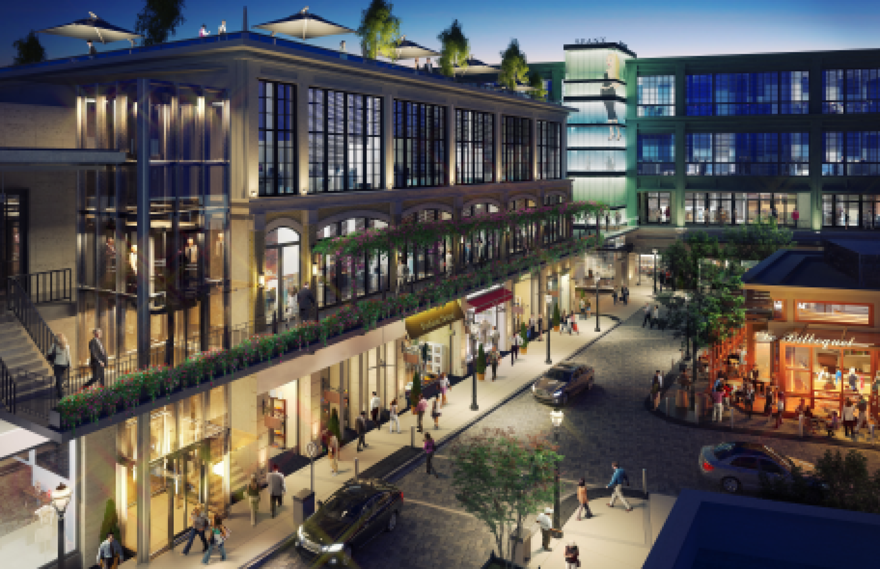 Each of the parking decks at the massive development will feature an automated lighting system which shows which spaces are open.