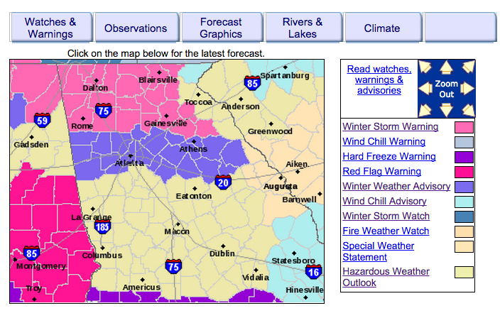 The service issued another Winter Weather Advisory on Thursday, stating that the metro Atlanta area, including the city itself, could be in for snow, sleet, and freezing rain this weekend.